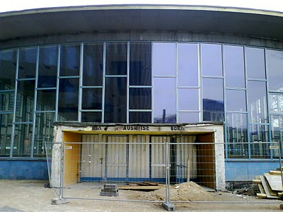 In front of Friedrichstraße station, along the Spree River, the Tränenpalast or ‘Palace of Tears’ has reappeared out of the construction dig of the much criticised (brutal and severe) Spreedreieck office development.