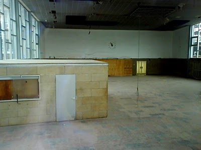 It is March 2010 and I can finally look in from outside, after many years when the Tränenpalast was off limits because of the nearby building of Berlin’s newest (and I think heartless) Spree-side skyscraper. This office block is sadly reminiscent of Mies van der Rohe’s designs, like a slap to the face to recall his exquisite and unrealised plans for the same site. Ernst and Young have installed themselves inside, the barriers have been taken away. I can now walk right up to the windows of the disintegrating ‘Palace’ nearby: