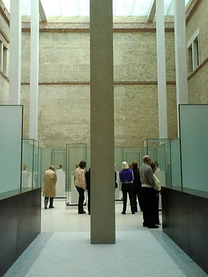 In one room are a series of turn-of-the-century friezes of ancient places in Egypt where German archaeologists dug. These places are romanticised, the archaeologist is adventurer, there is colonial prestige at stake. There is also delight in difference, in reconstructing what was lost out of the Saharan sands. The Neues Museum lovingly reproduces classical columns, friezes, porphyry medallion floors. It is a romance with colonialism and empire-building which could be as dangerous as it was imaginative and curious.