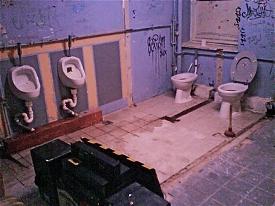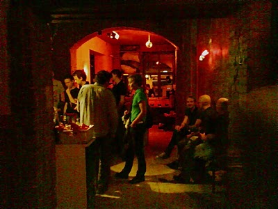 Last weekend, rather more talky and social than normal in Ackerkeller, was the ‘demolition party’. There was truth in the name. The exterior of the building was all scaffolding, rubble and dumpsters. Inside, the furniture and fixtures were removed, a temporary bar set up on a folding table with a tablecloth over it. The walls were stripped, the bathrooms had no stalls, just a shower curtain around one toilet. The claustrophobia of the living room, the musty sofas, the ripped chairs, was removed. There was space, a minimal allure in the last moments.