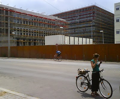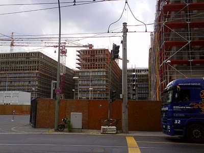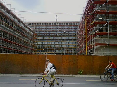 Berliners are used to there being a great space off-limits between Mitte and Wedding, hidden behind a wall. The East German regime was most hated because of the way it inhibited freedom of movement and because of the Stasi’s invasion of private life. The knocking down of the wall was a symbolic moment in the change of ideologies. The building of a billion dollar complex to State Security where it stood sends quite a different message. We are walking down Chausseestraße, a rather bleak, treeless, avenue that runs through Mitte to Wedding. Here, at the juncture of the two districts, was a windy corridor, where the wall once stood.