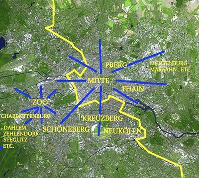 Take a look at the following map where the yellow line represents where the Berlin wall used to be and blue lines suggest the subjective forces of gravity…