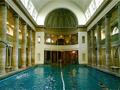 Kiehl built with the imagination of the 19th Century, the baths are a Classical Temple to physical fitness. It was largest facility of its kind in its day. There is a large pool and a small pool, with vaulted roofs, mosaics and ionic colonnades. And there is the Sauna area, copied from Pompei, with the requisite hot and dry chambers, pools of varying temperatures, an exercise in pushing the body by degrees.