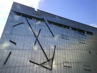 I first visited the Jewish Museum in 2001 when it opened. The building was empty, a vessel, the collection not yet installed; architectural tours were offered. I am still grateful to have experienced this sculpture with its insides uncluttered. The sense of disorientation was profound, one struggles to find direct ways through its discontinuous floor plan. Daniel Libeskind, the American-Polish-Jewish Architect, likens the imprint to a shattered Star of David.