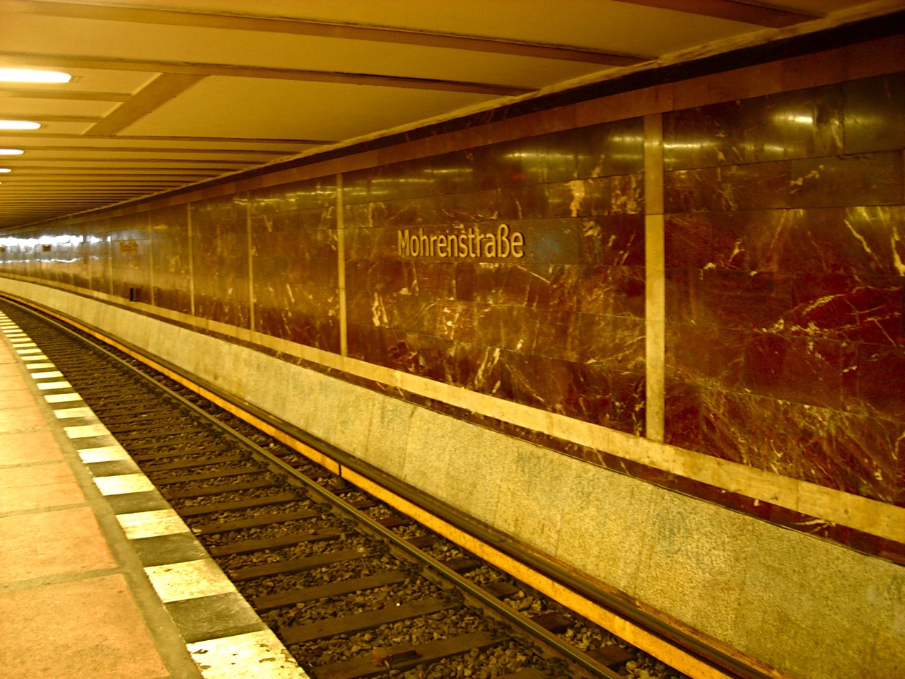 When you wait for the metro at Mohrenstraße station on the U2 line, only a few steps from where the New Chancellery once stood, you might look up and admire the crimson stone. Step back and lean against a pillar, then realise it too was once part of Hitler’s palace. It may have been a slab he walked on himself.