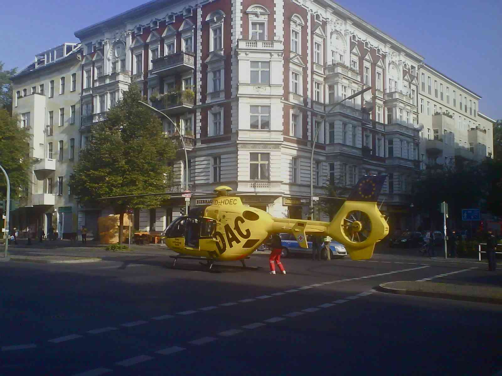 So I ran outside into Graefestraße and there I saw Christoph landing, surrounded by police officers and fire engines. It was odd to see him there, he is not someone you normally see in the street. There were plenty of people there, waiting, wondering.